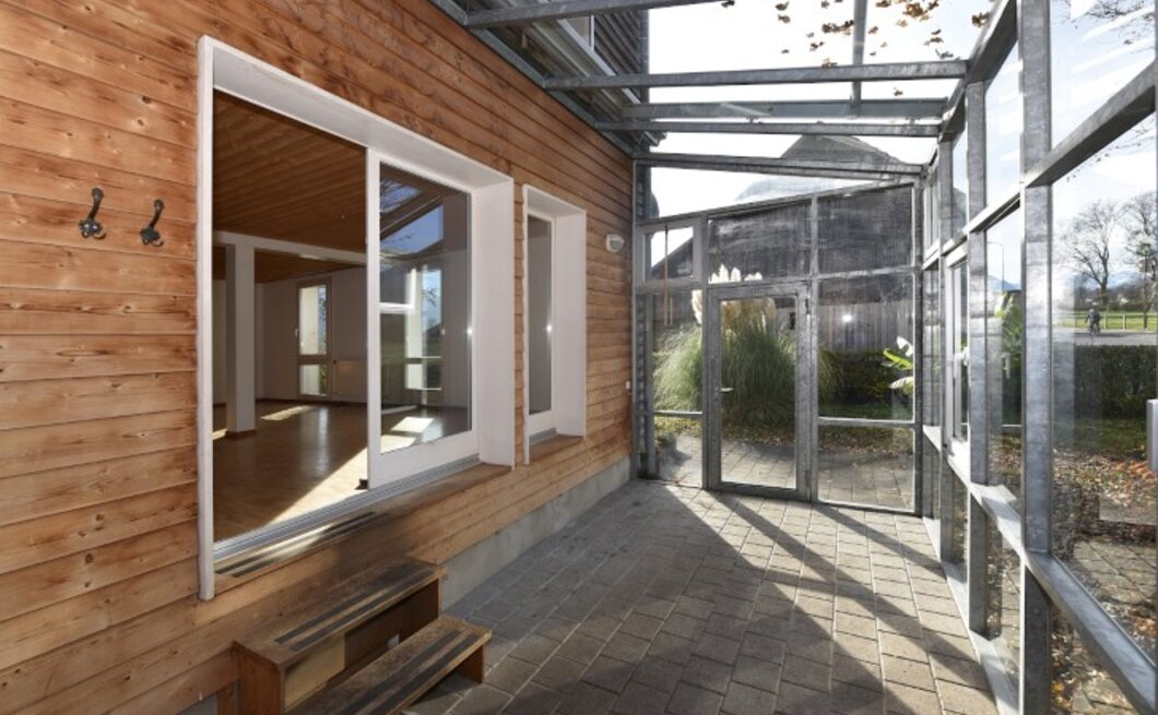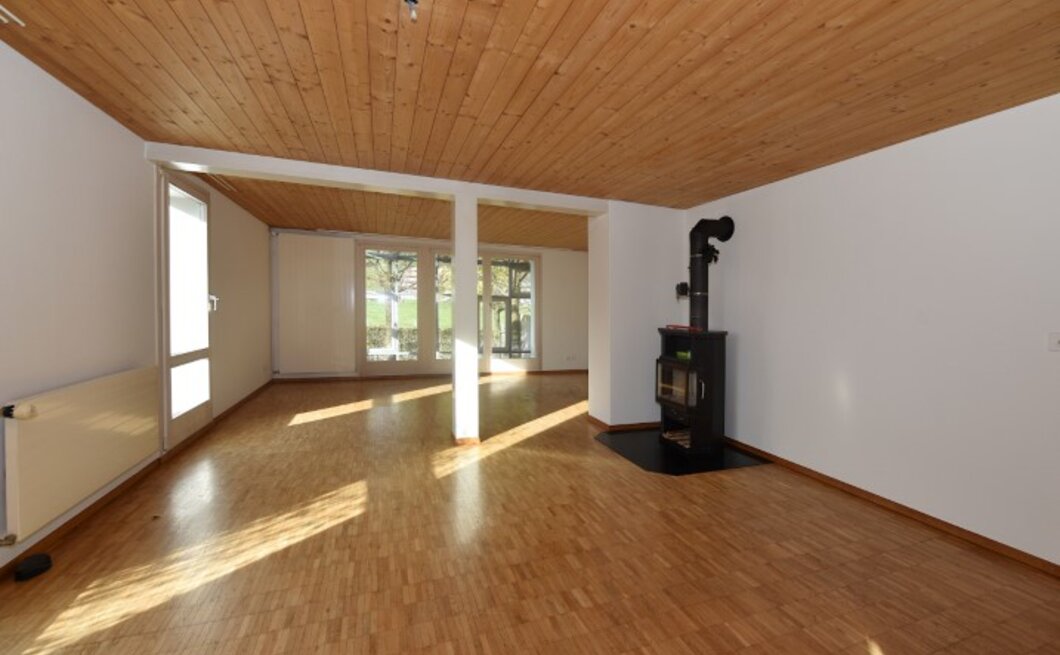 - Behagliche Wohnatmosphäre dank viel Holz und grossen Fenstern