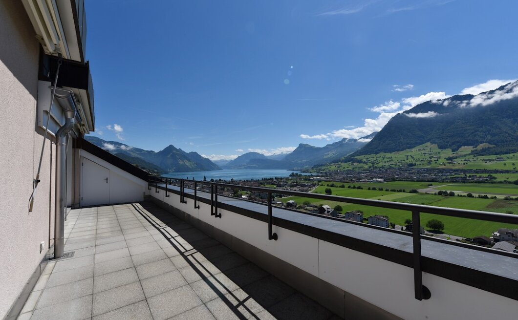 Der atemberaubende Ausblick reicht vom Vierwaldstättersee in die Voralpen- und Alpenkette, sowie weiter über den Talboden bis nach Stans.