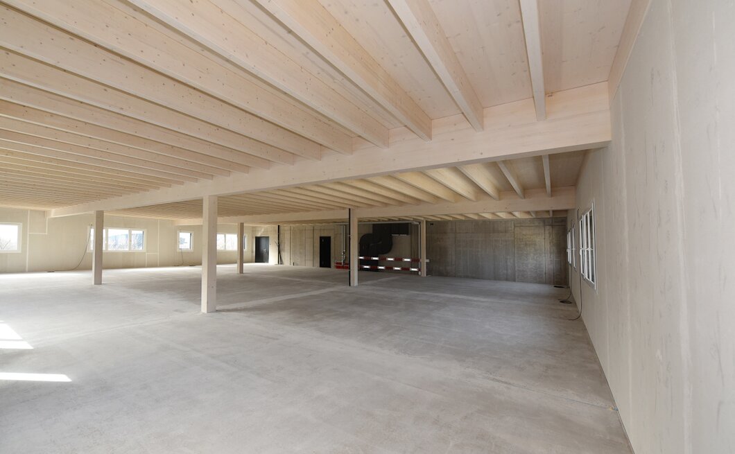 Im 2. und 3. Obergeschoss eines neuen Gewerbegebäudes in Buochs vermieten wir ab sofort attraktive Flächen im Rohbau.