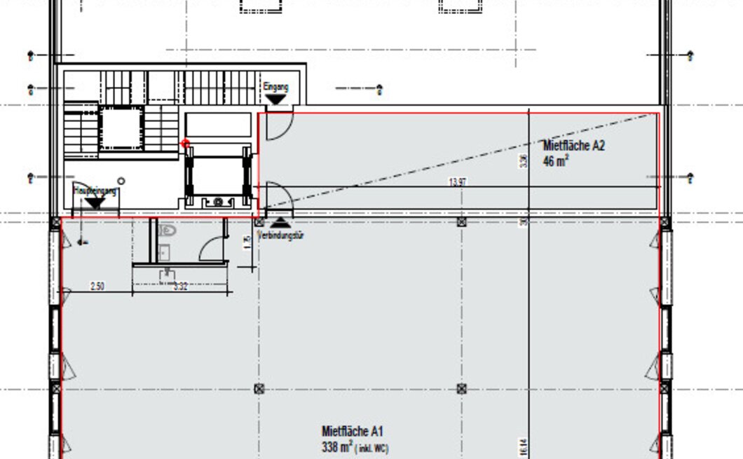 2. Obergeschoss: 338 m² (inkl. WC)
