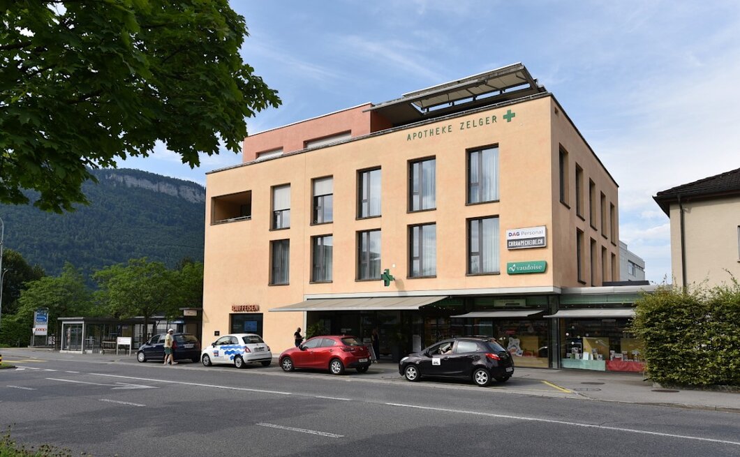 Es stehen zwei Einstellhallenplätze à CHF 150./Monat zur Verfügung. Weitere Parkplätze können bei Bedarf im benachbarten Bahnhof-Parking mitgenutzt werden Zufahrt über dieselbe Einfahrt.