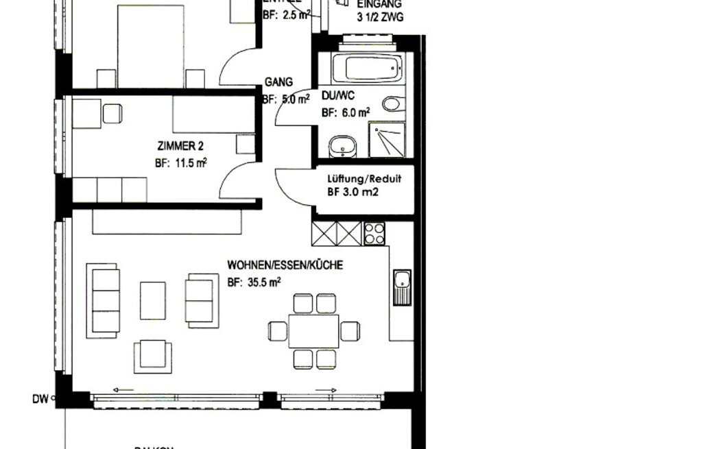 Die moderne Wohnung selber wurde mit wertigen Materialien und Geräten ausgestattet. Dank der energiesparenden Minergie-Bauweise profitieren Sie neben tieferen Heizkosten von einem gleichbleibendem und angenehmem Raumklima, welches durch die Komfortlüftung stetig sichergestellt werden kann.