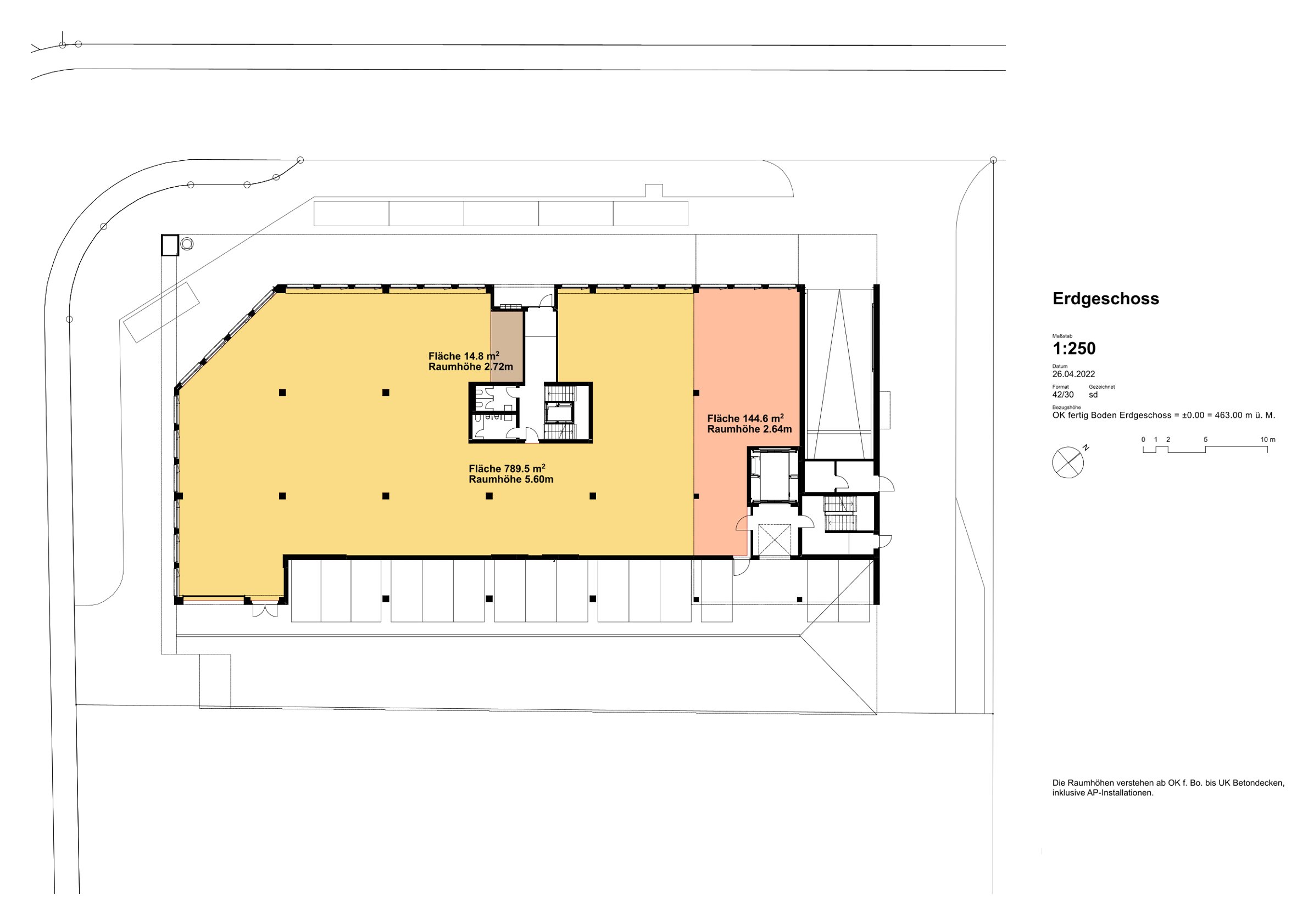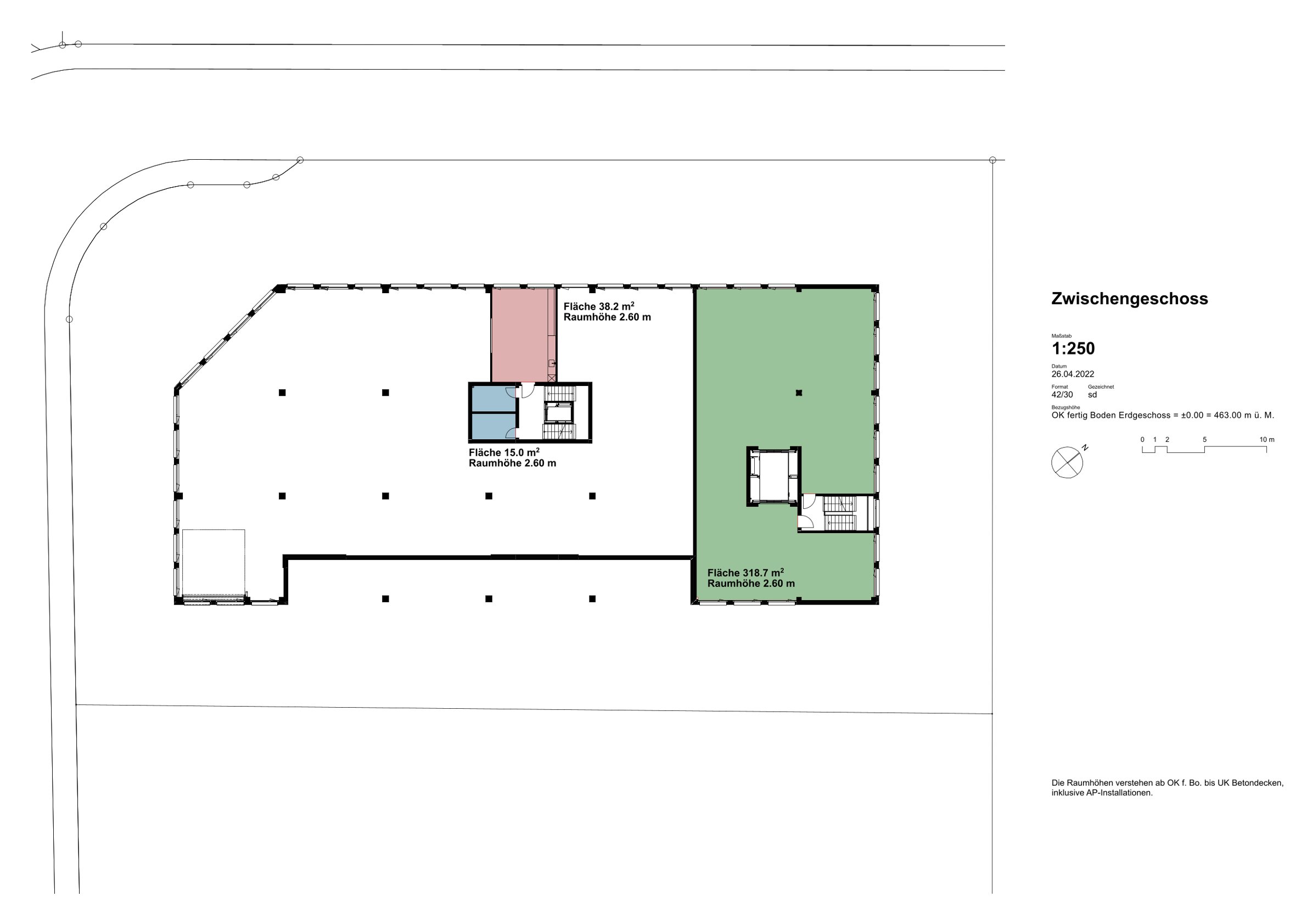 Zwischengeschoss: Fläche: 372 m² Raumhöhe: 2.60m