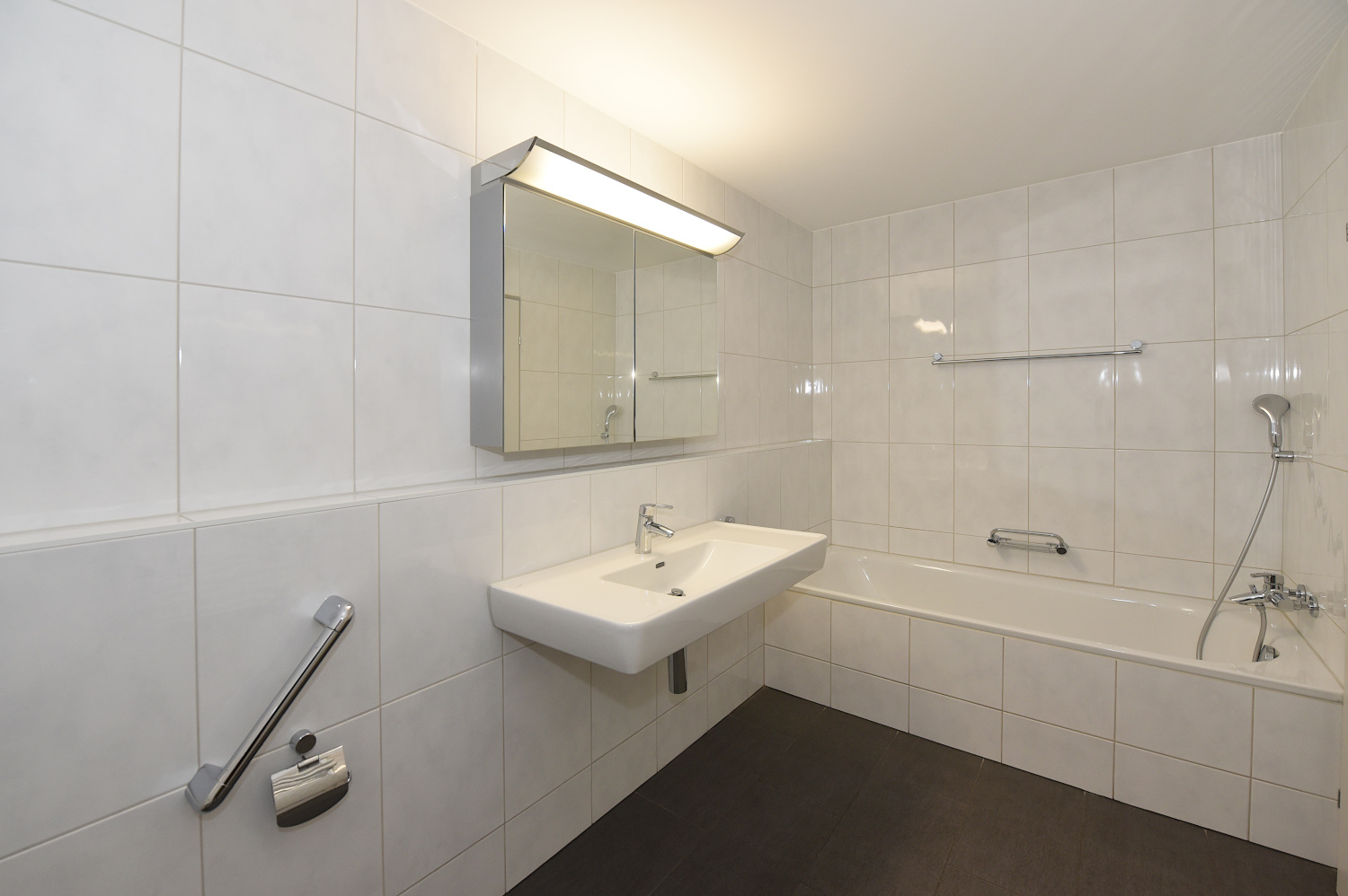 - Grosses Badezimmer mit Badewanne und Anschluss für WM/TU