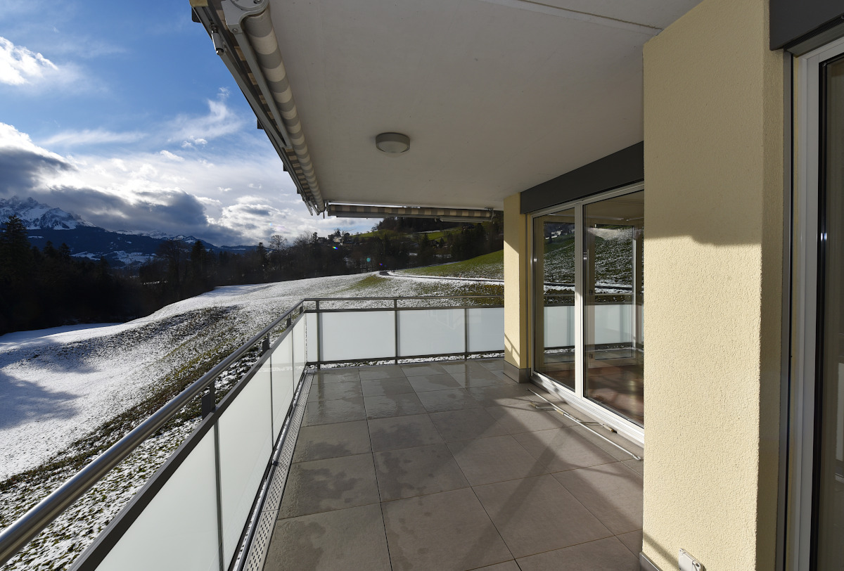 - Sonniger und grosszügiger gedeckter Balkon mit Abstellecke