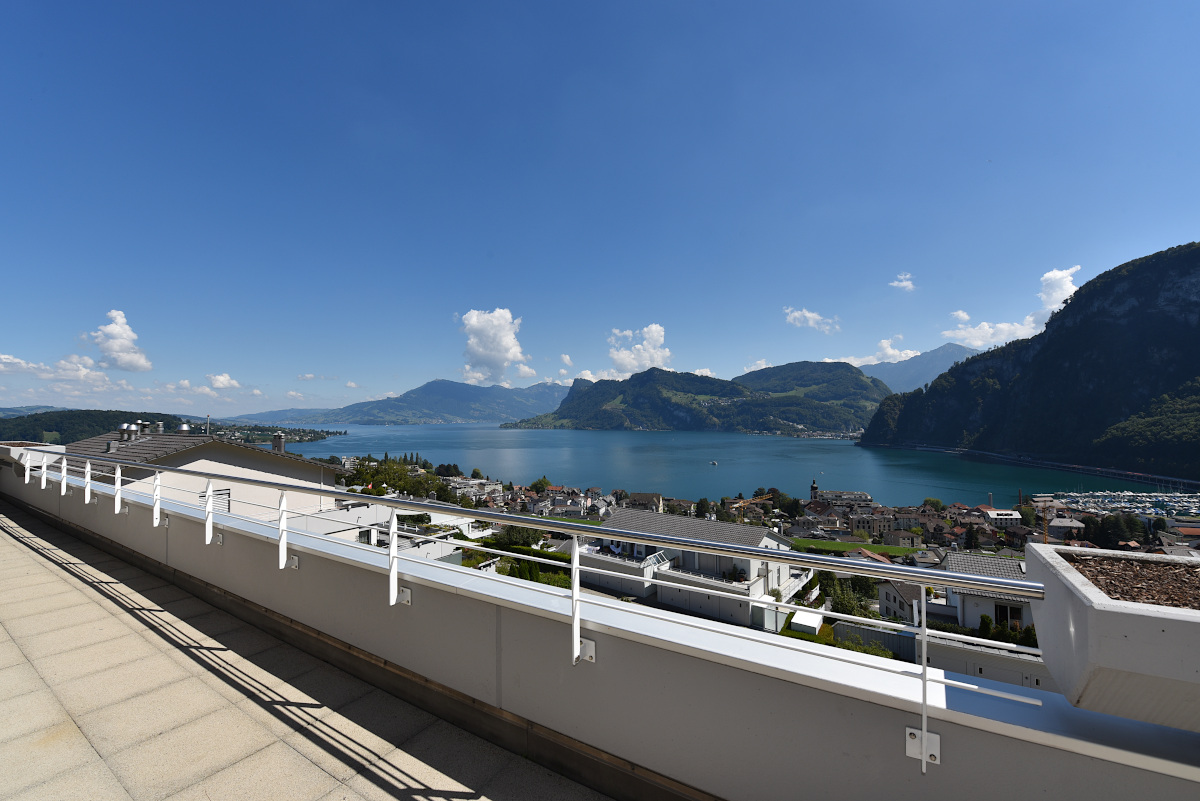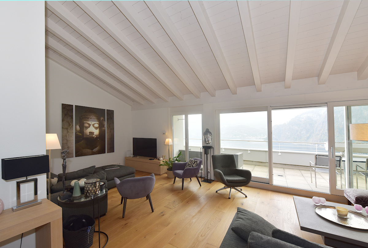 Die Ausstattung ist hochwertig: edle Parkettböden, keramische Platten in den Nasszellen sowie ein Lift, der direkt in die Wohnung führt. Ein besonderes Highlight ist die rund 77 m² grosse Terrasse, die viel Platz für Erholung, Privatsphäre und unvergessliche Momente im Freien bietet.