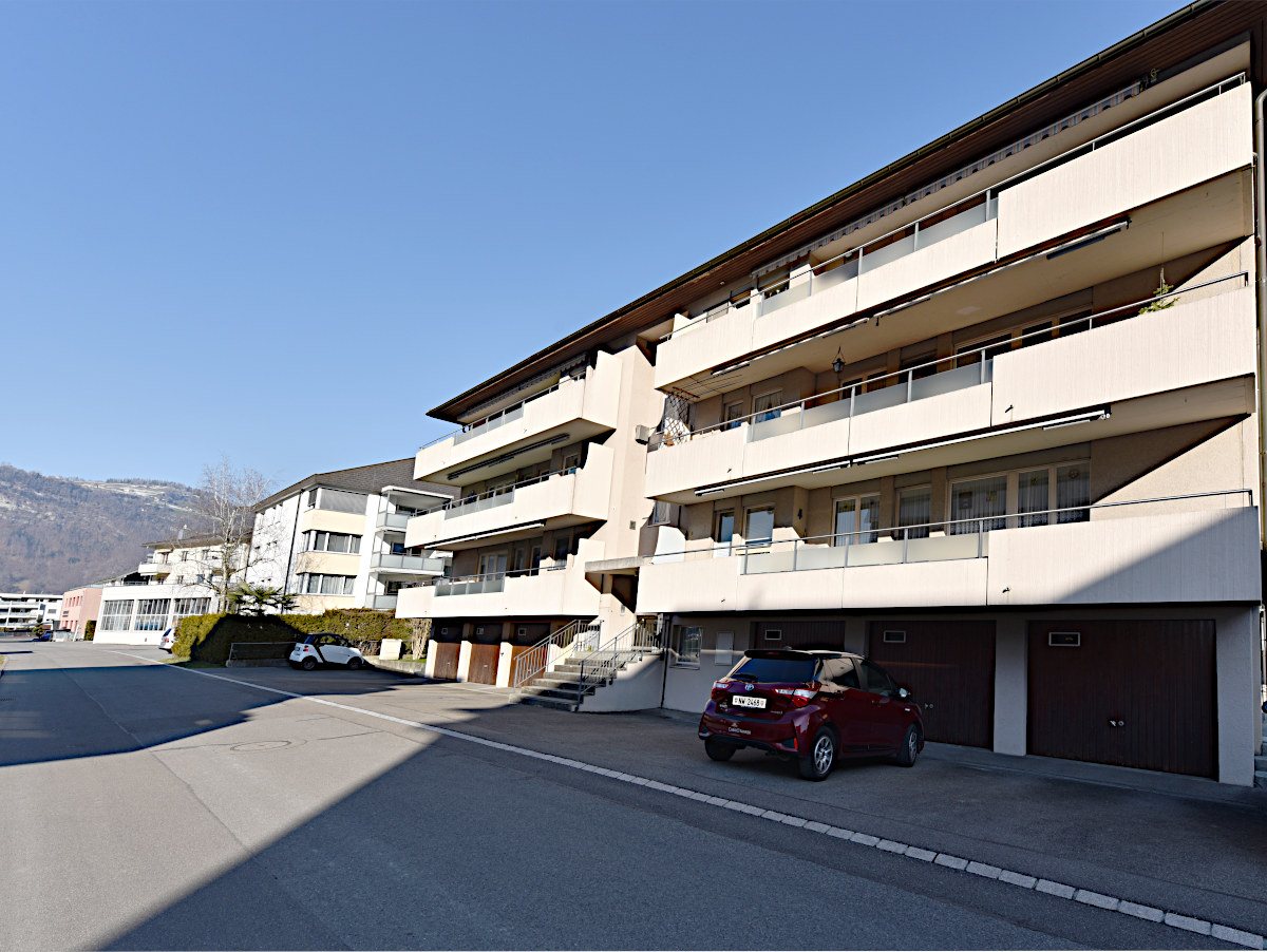 Eine Einzelgarage sowie ein Aussen-Abstellplatz und ein Estrichabteil sind im Verkaufspreis inbegriffen.