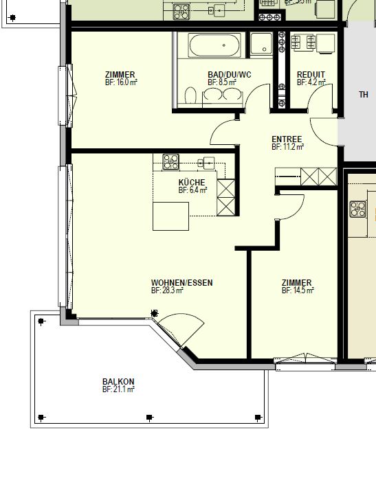 Grosse und helle Räume, moderner Grundriss mit einem praktischen Reduit (inkl. Wäscheturm) sowie hochwertigem Ausbaustandard mit schönem Parkett und wertigen Gerätschaften - grosser Keller und gedeckter Balkon inklusive. Weiter ist die Wohnung mit einem Lift erschlossen.