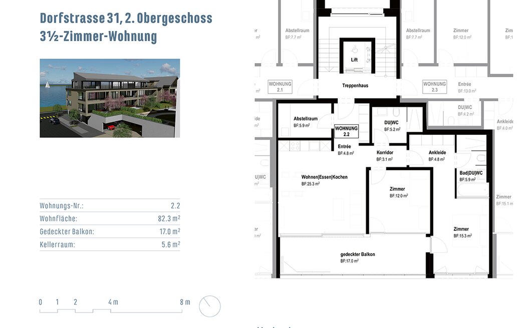 3.5 Zimmerwohnung im 2. OG (ohne Seesicht):