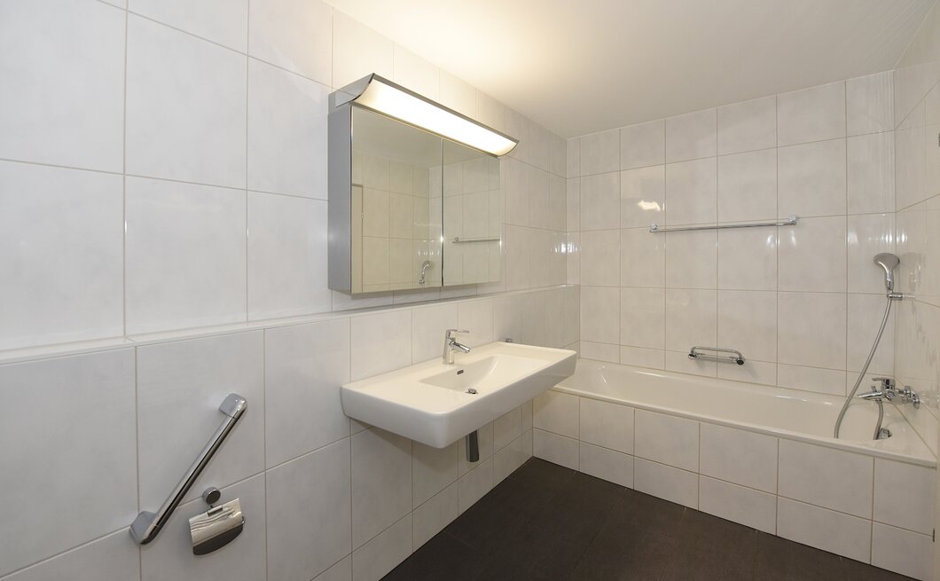 - Grosses Badezimmer mit Badewanne und Anschluss für WM/TU
